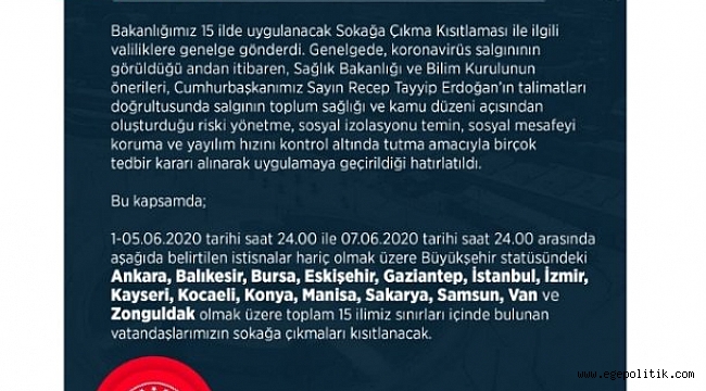 Icisleri Bakanligi Acikladi 5 7 Haziranda 15 Ilde Sokaga Cikma Yasagi Ilan Edildi Gundem Ege Politik