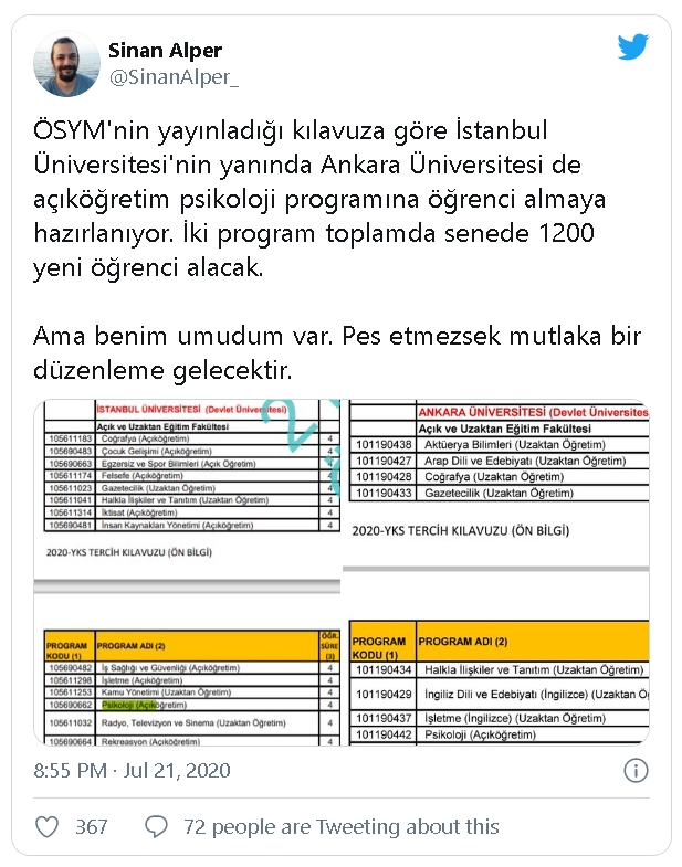 Kampanya Acikogretim Psikoloji Bolumu Toplum Ruh Sagligina Yapilan Saldiridir Psikolojideacikogretimehayir Yekta Sarac Yuksekogretimk Acikveuzaktan Change Org