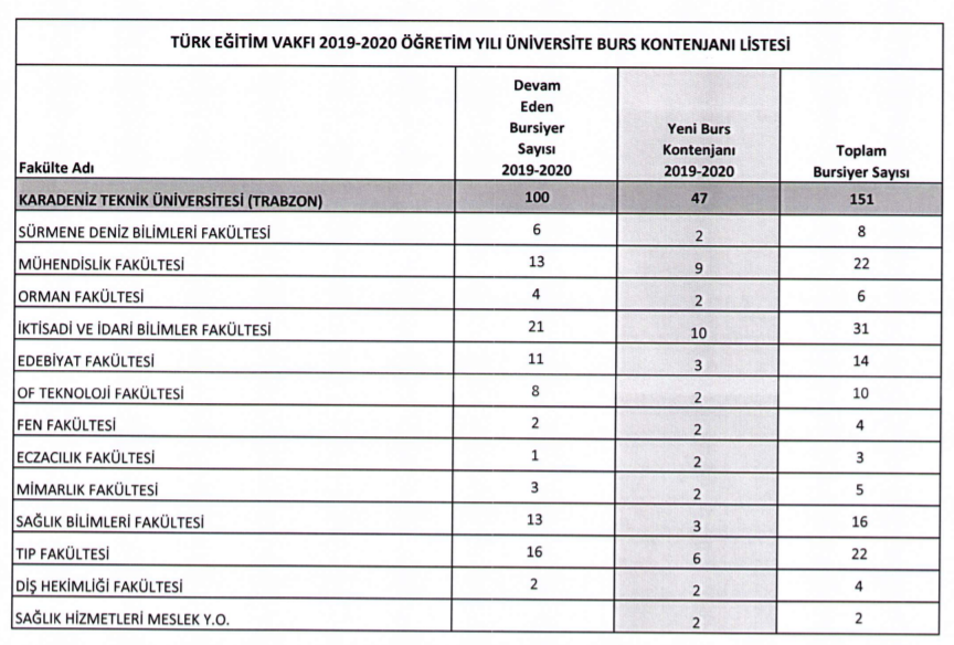 Tev Egitim Vakfi Bursu Kontenjanlari