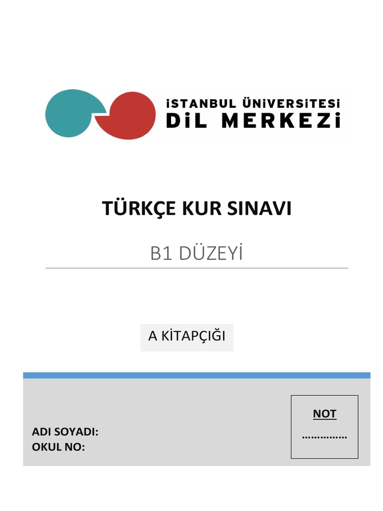 Istanbul Universitesi Nin Tomer Inin B1 Sinavi 1