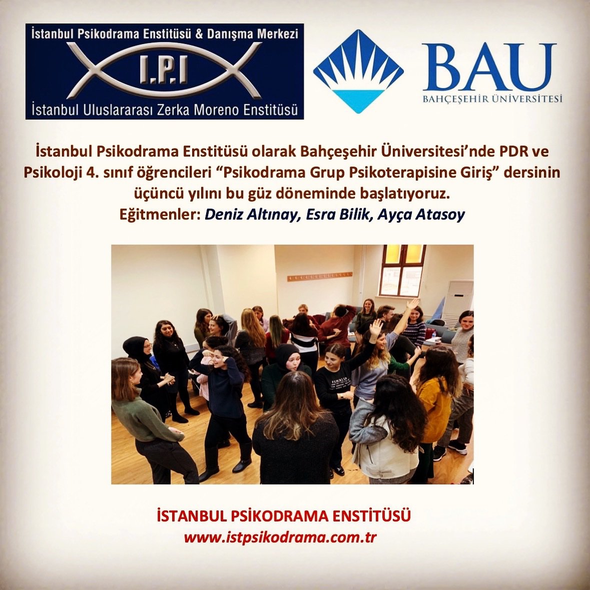 Uzivatel Ist Psikodrama Enst Na Twitteru Istanbul Psikodrama Enstitusu Olarak Bahcesehir Universitesin De Yuruttugumuz Psikodrama Grup Psikoterapisine Giris Dersimiz Ucuncu Yilina Basliyor Psikodrama Nin Akademi Icindeki Gelisimine Onculuk Ediyor