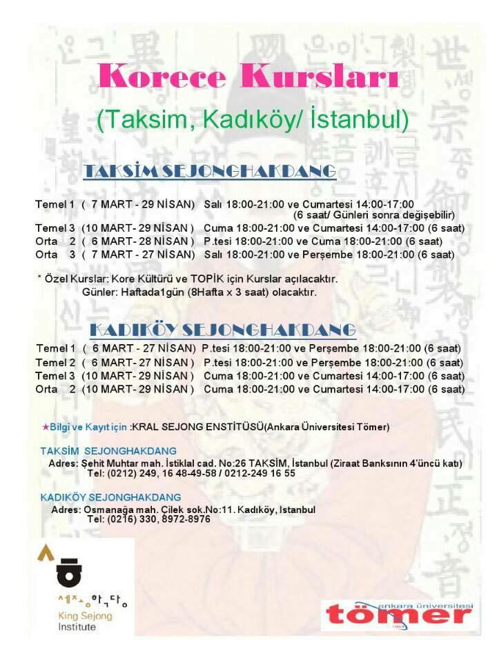 Taksim Tomer Korece Kursu Yeni Donem 22 Nisan 14 Haziran 2014 Cadi Kazani