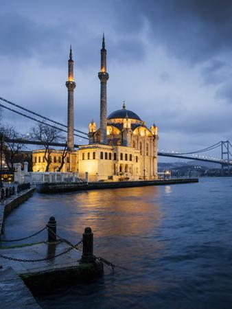 Istanbul Turkey Ortakoy Mosque Illuminated At Dusk It Was Completed In 1856 By The Architect Garabet Balyan In The Besiktas Side Of The Bosphorus Stock Photo Alamy