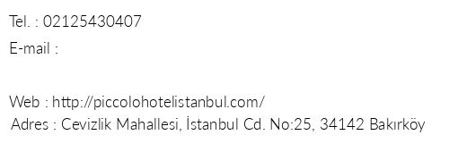 Piccolo Hotel Istanbul Telefon Numaralari Ve Iletisim Bilgileri Oteliletisim Com